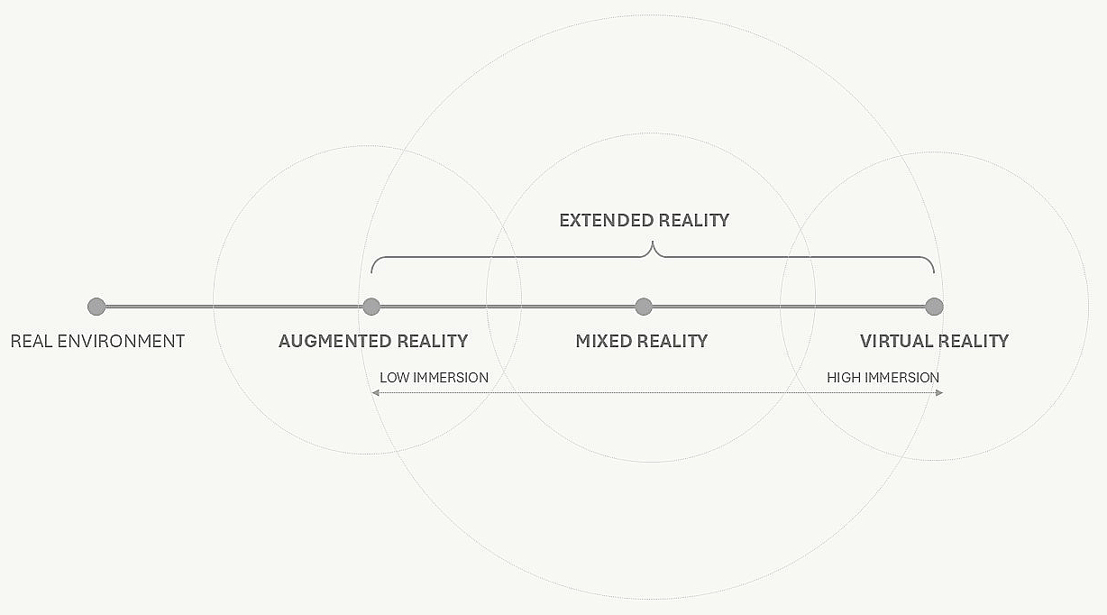 Originally proposed by Milgram and Kishino (1994), the Reality–Virtuality Continuum illustrates the dynamic spectrum between the real world and fully immersive Virtual Reality (VR). In between lies Mixed Reality (MR)—a space where physical and digital elements interact—and Augmented Reality (AR), where virtual content is layered onto the real environment. These immersive technologies are collectively referred to as Extended Reality (XR), which encompasses AR, MR, and VR under one unified framework.