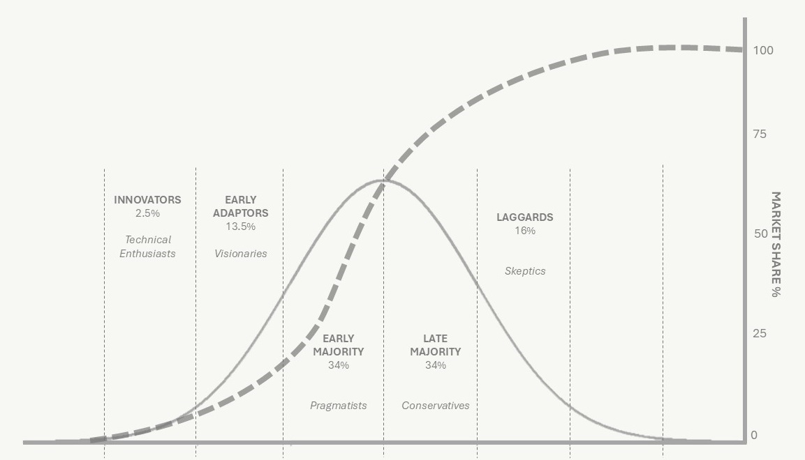 Everett Rogers’ Diffusion of Innovations theory (1962)Geoffrey Moore’ Technology adoption life cycle (1991)AI+XR Integration