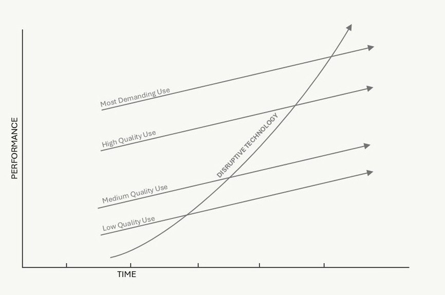 Adding a layer of nuance, Clayton Christensen introduced the concept of disruptive innovation in his influential book The Innovator’s Dilemma (1997). He described how smaller firms with fewer resources can successfully challenge established businesses by targeting overlooked segments and deploying simpler, more affordable technologies. Christensen noted: