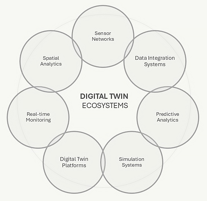 Digital twinsthat sense structural stress, predict urban flows, or coordinate autonomous systems—thinking spatially at every scale.