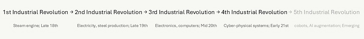 The foundation of this evolution lies in what Klaus Schwab, founder of the World Economic Forum, classifies as the Four Industrial Revolutions. In his seminal work The Fourth Industrial Revolution (2016), Schwab explains: